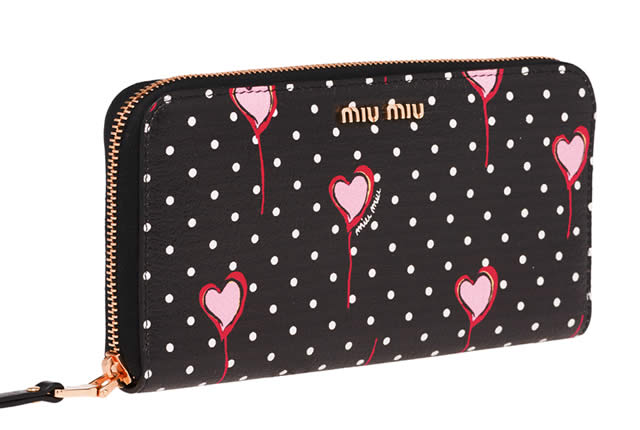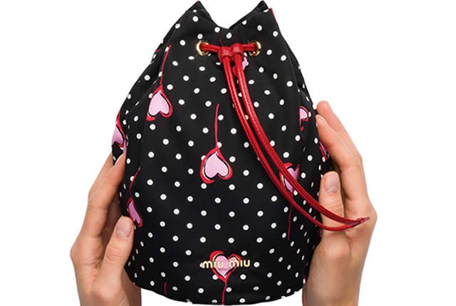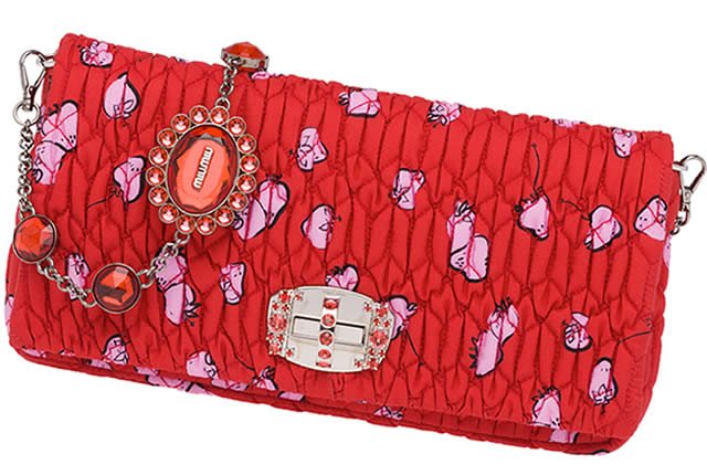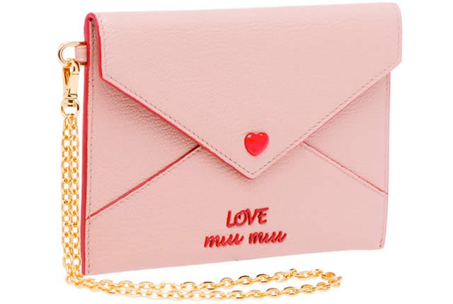Una romántica propuesta de bolsos y accesorios ha creado la marca Miu Miu para San Valentín se trata de una colección cápsula llamada L’amour compuesta por varios diseños como motivos de corazones resaltando el romanticismo donde el color rojo es protagonista. Entre los diseños que sobresalen hay un coqueto bolso pequeño tipo tula en cuero negro pintado con puntos blancos y corazones en sentido invertido en colores rojo y rosado, también un hermoso bolso tipo sobre rectangular en cuero rosado, con cadena dorada para llevar a la mano, adornado con un corazón rojo en la tapa y las letras «love miu miu«.